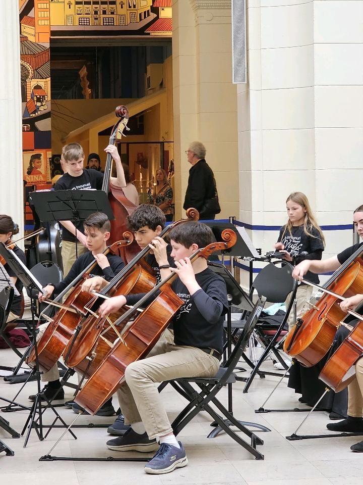 Level 4: Intermediate level auditioned string orchestra. No age restriction, approximately 5th-7th grade with 3-5 years experience. Private lessons required.